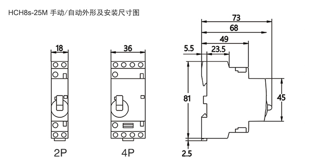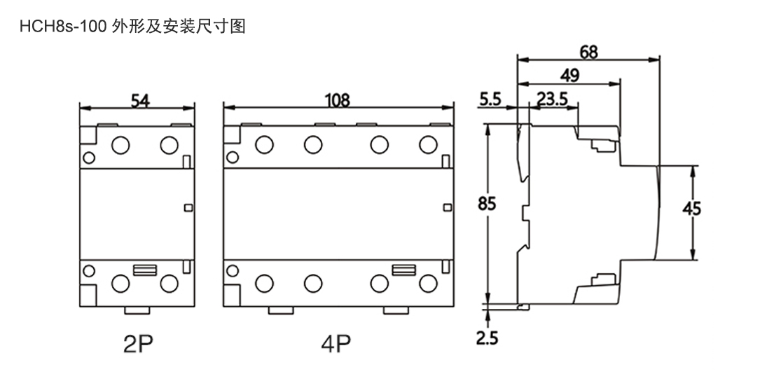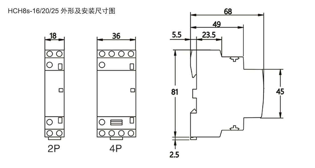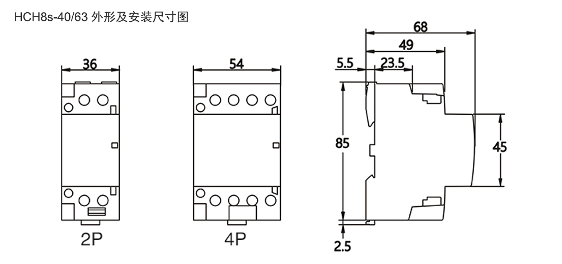 HCH8s微型交流接触器(又称为模数化接触器、建筑用接触器),主要适用于交流50Hz/60Hz,额定工作电压至400V,额定工作电流至100A的电力系统中,在AC-1、AC-7a(无感或低感负载、电阻炉、家用电器和类似用途的低感负载)使用类别下,作远距离开关和控制电路之用,也可用于控制家用电动机负载。家用接触器不用于分断短路电流,因此使用时应选配适当的短路保护电器(如小型断路器)。符合标准IEC61095,GB17885。
